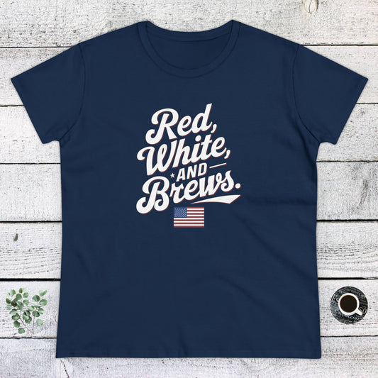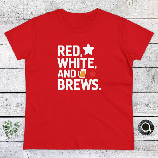 Women's T-Shirt, Women's Tee, Funny Gift, Red White and Brews!