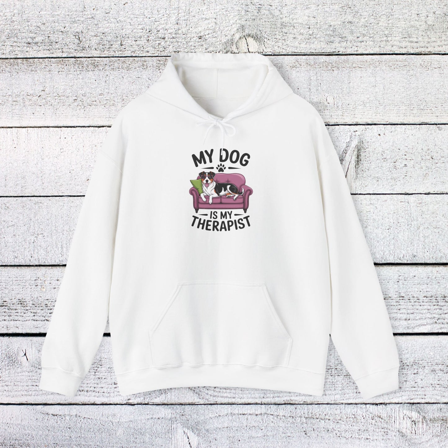 Unisex Heavy Blend™ Hooded Sweatshirt - My Dog is My Therapist | Funny Dog Lover Gift | Cute Pet Quote Design