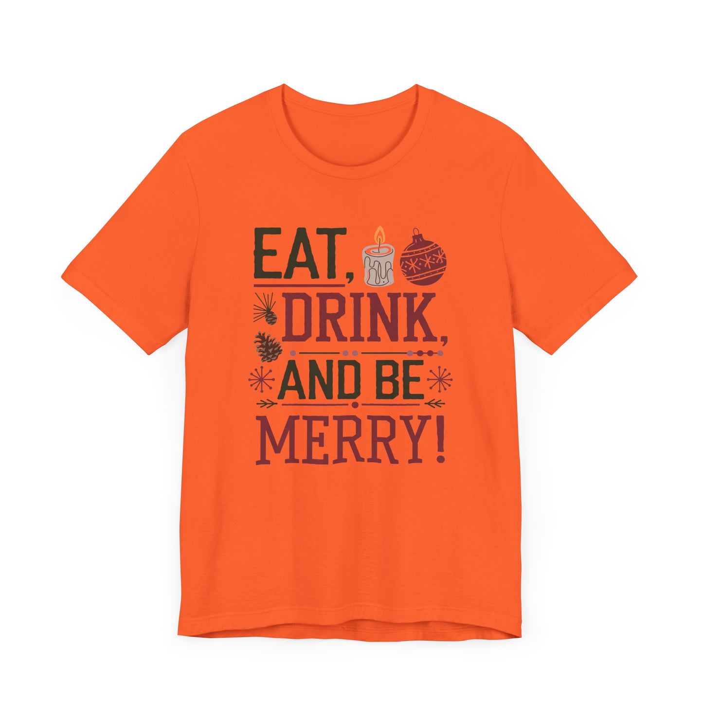 Men & Women Christmas T-Shirt. Eat, Drink, Be Merry. Unisex Christmas T-Shirt.