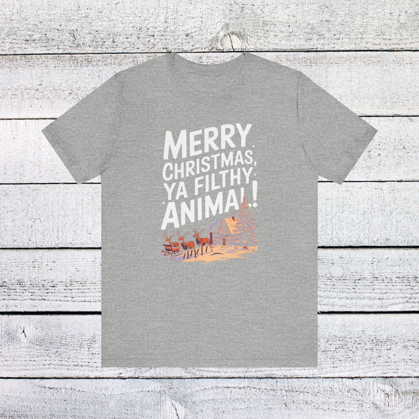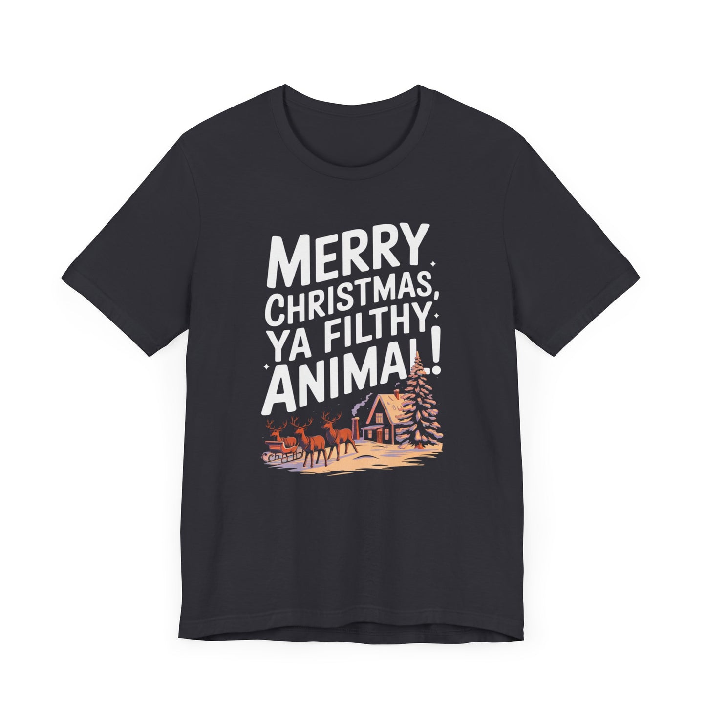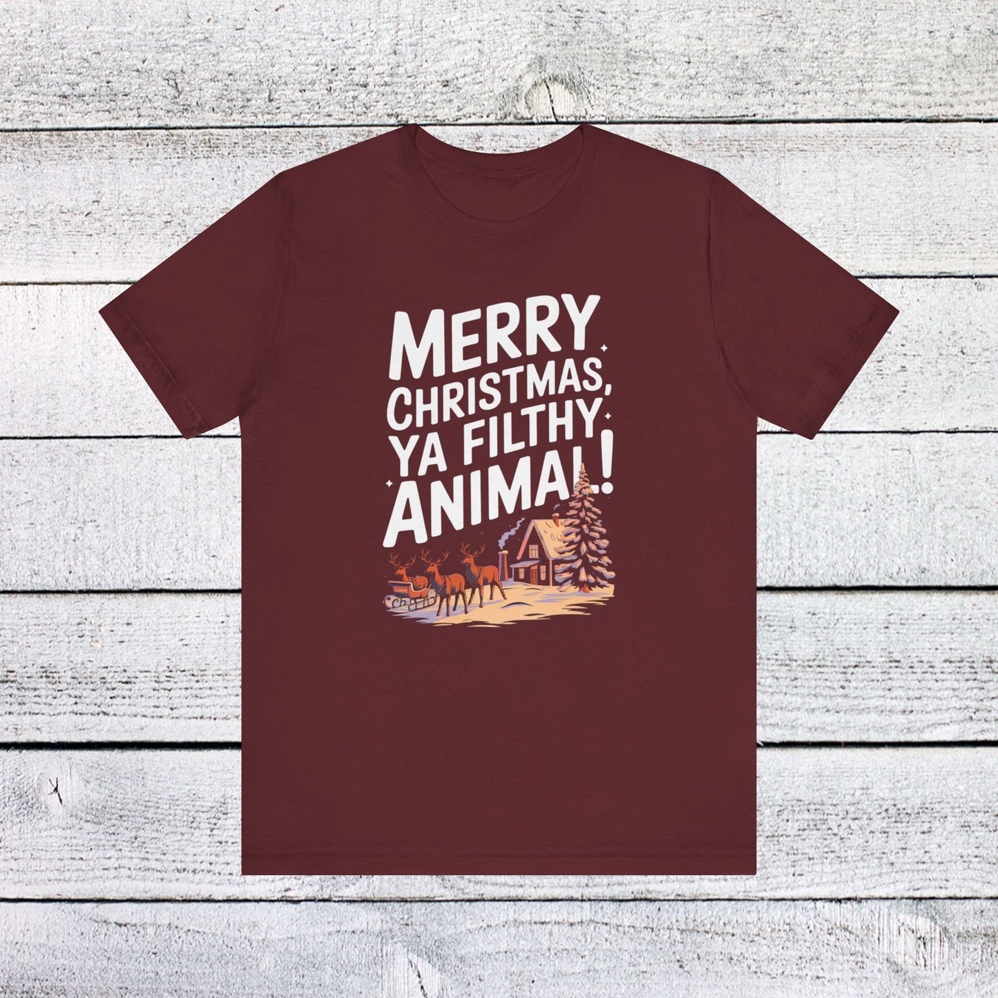 Men & Women Christmas T-Shirt. Merry Christmas Ya Filthy Animal. Unisex Christmas T-Shirt.
