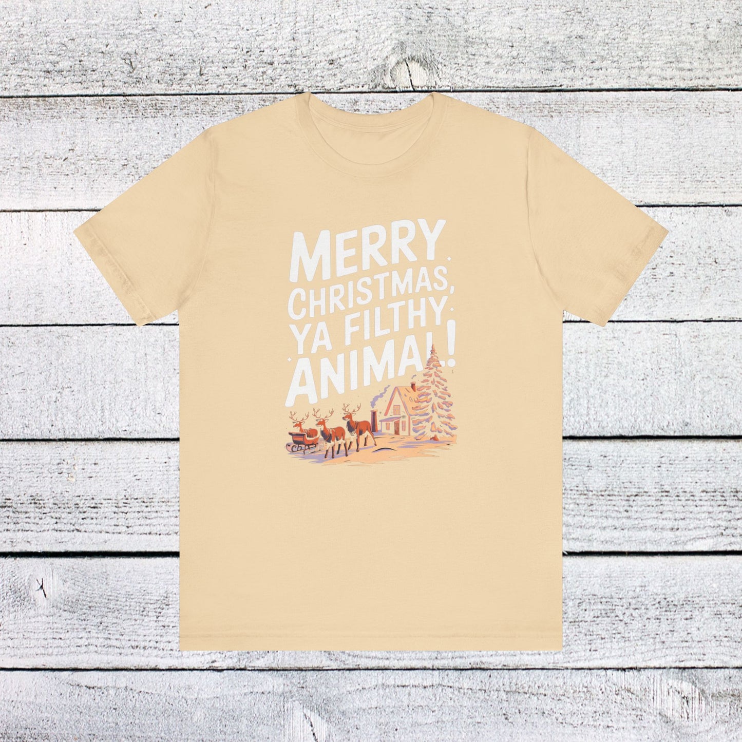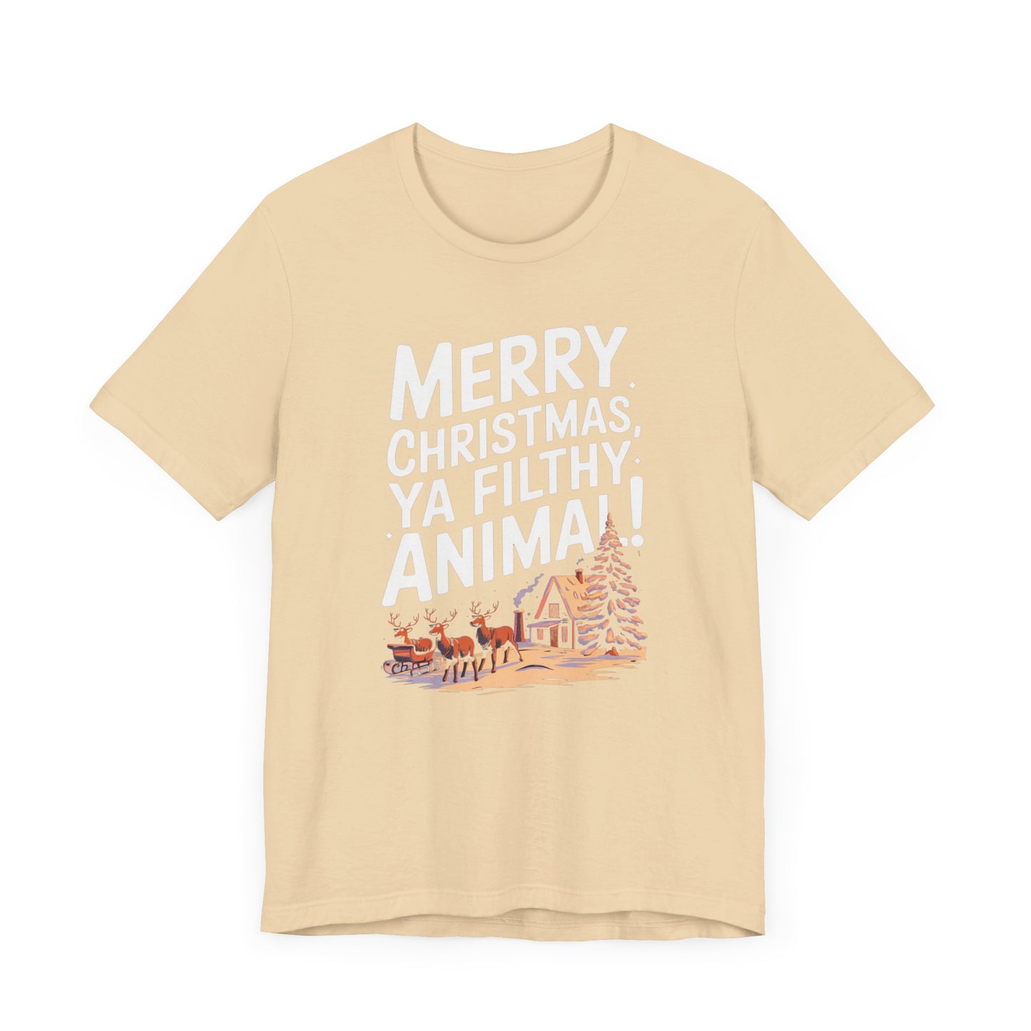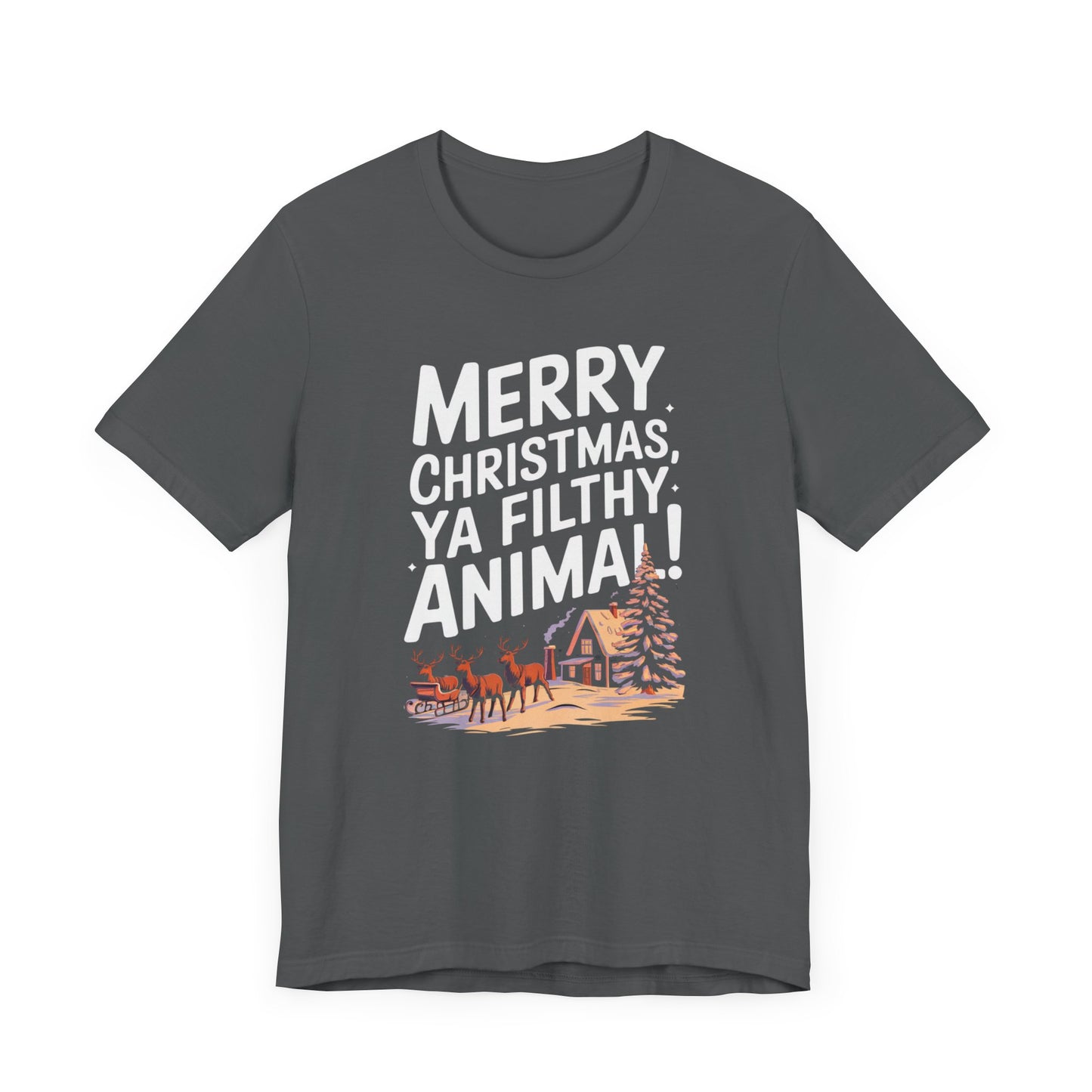 Men & Women Christmas T-Shirt. Merry Christmas Ya Filthy Animal. Unisex Christmas T-Shirt.