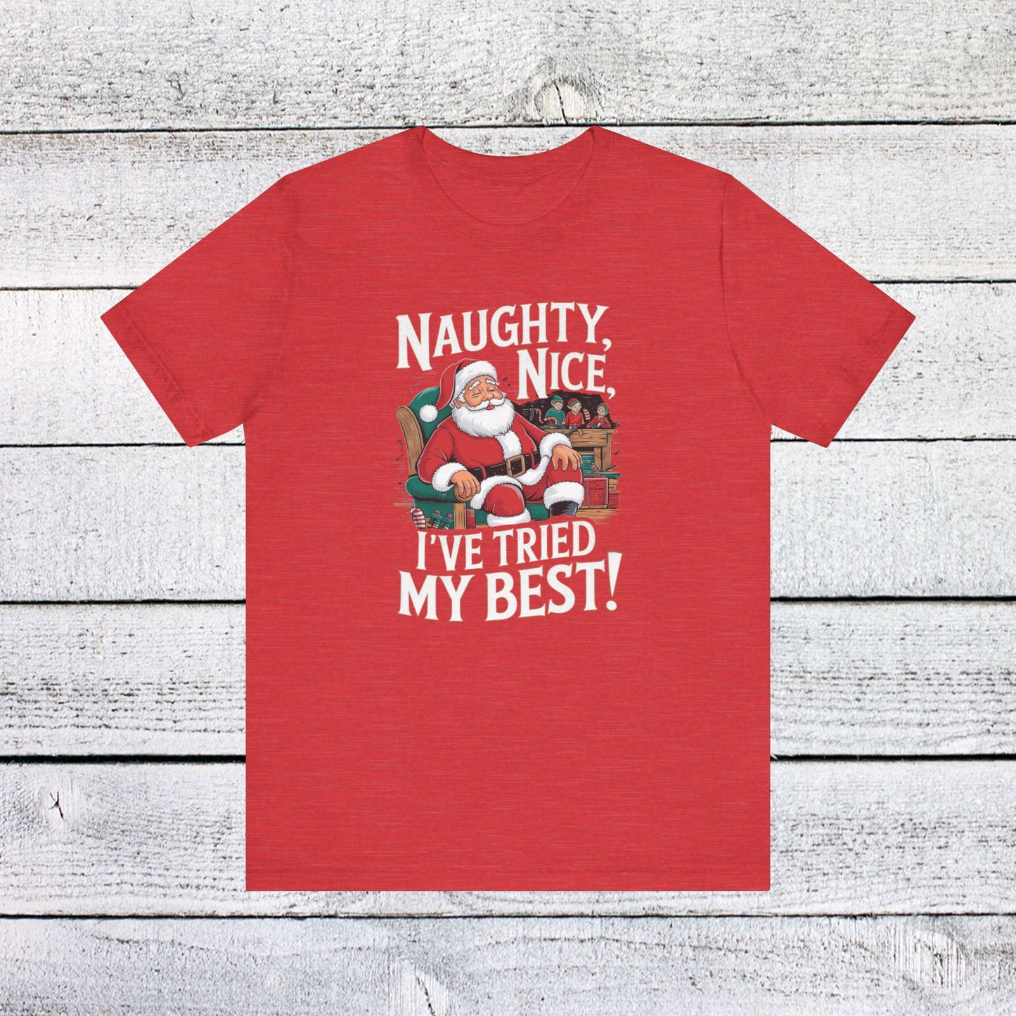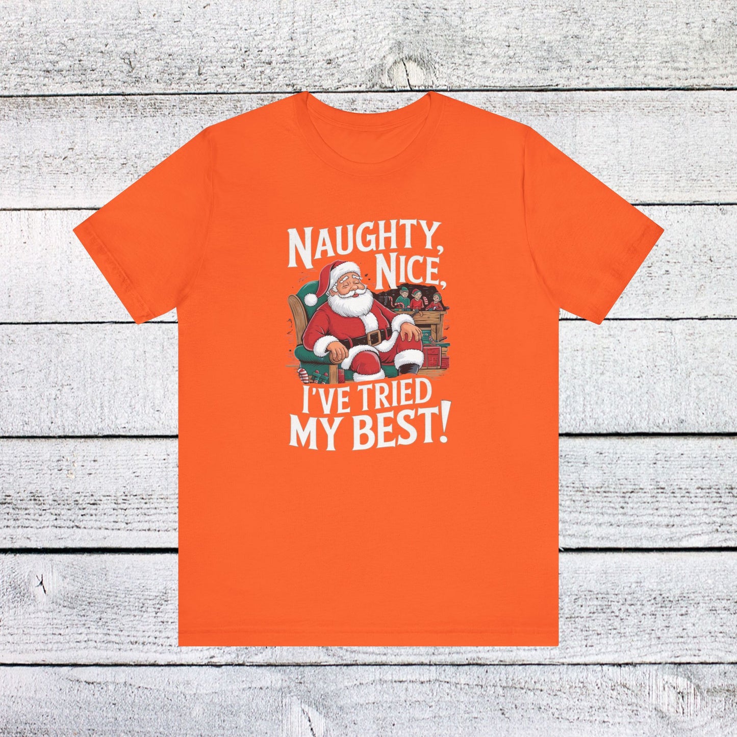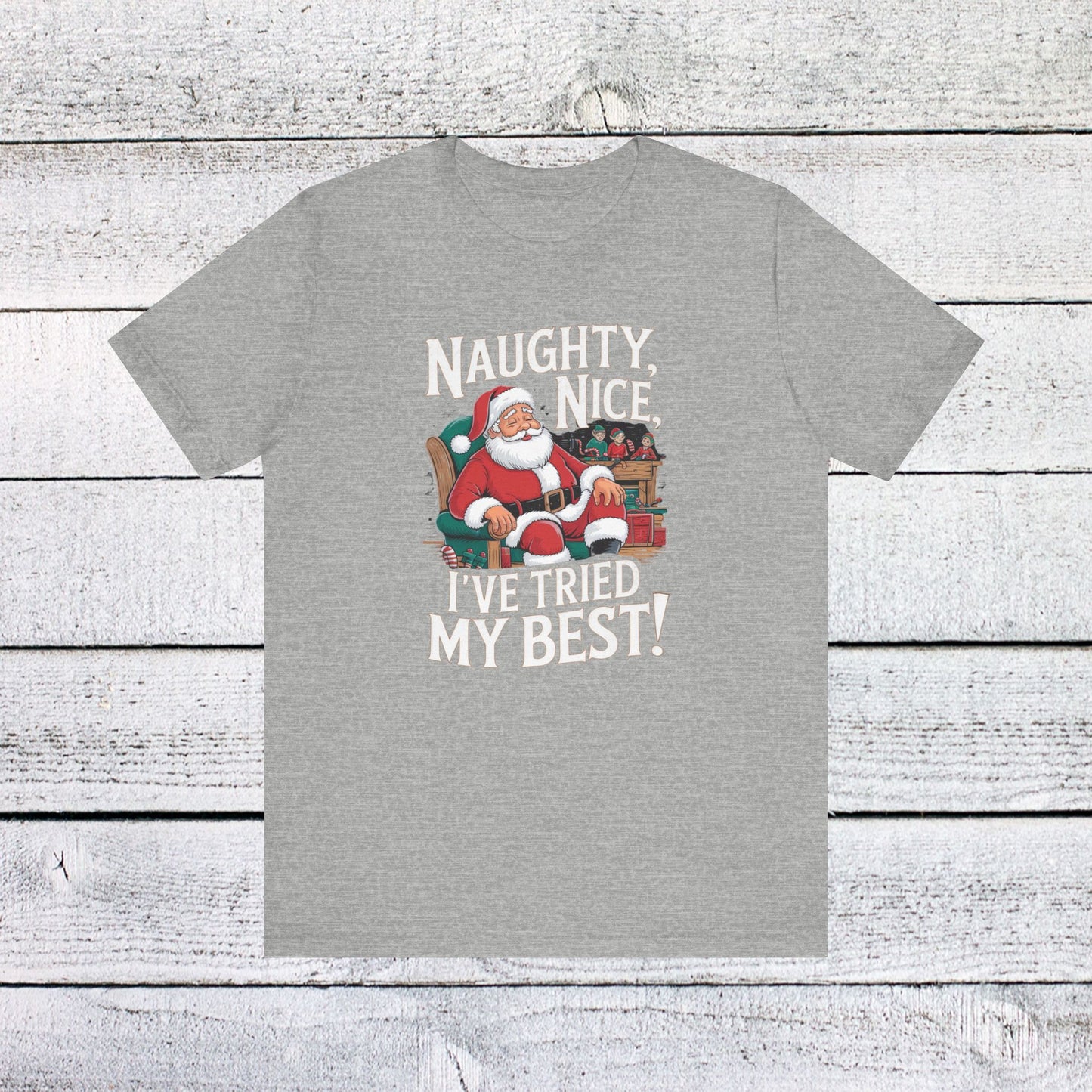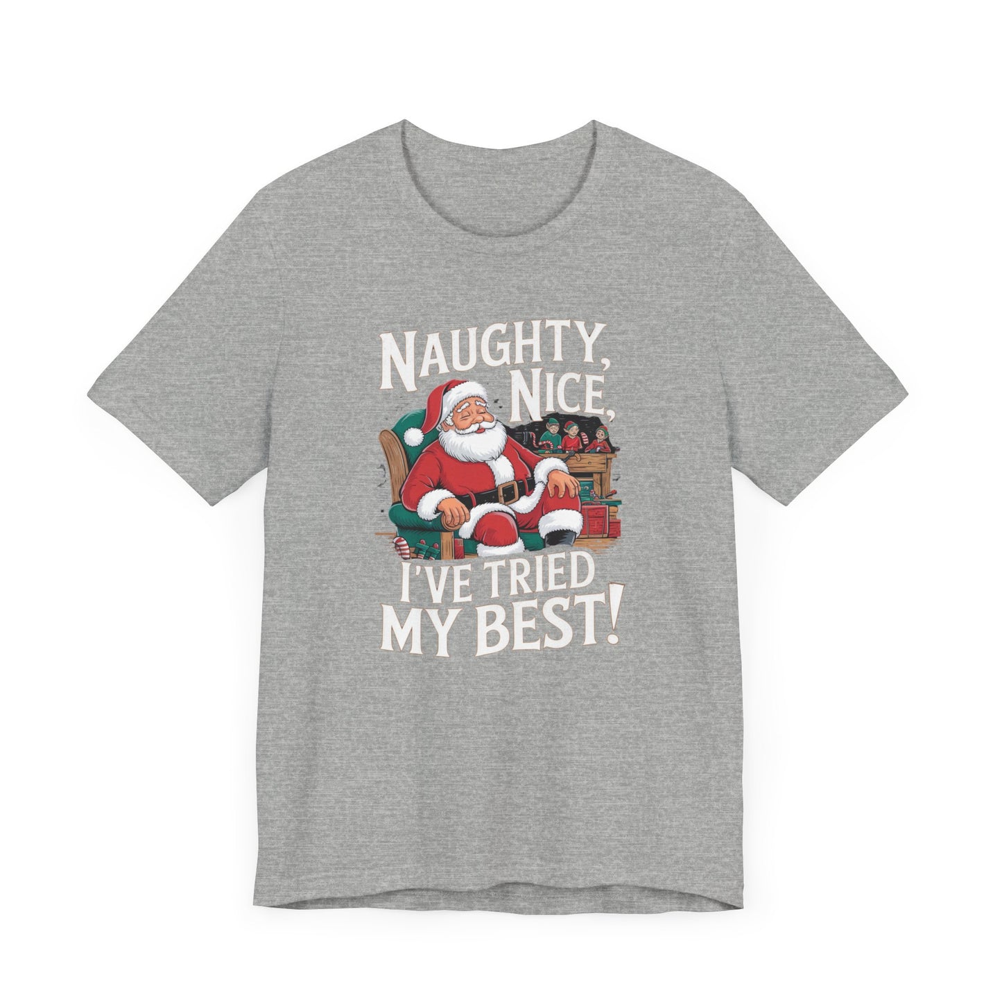 Men & Women Christmas T-Shirt. Naughty, Nice, Tried My Best. Unisex Christmas T-Shirt.