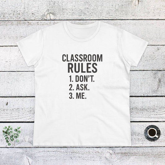 Trendy Women's Cotton Tee - Classroom Rules Design. Teachers with attitude.