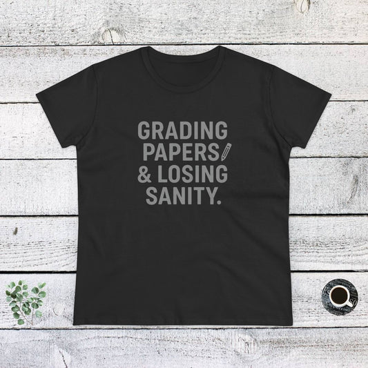 Women's Cotton Tee - Grading Papers & Losing Sanity. Teachers with attitude.
