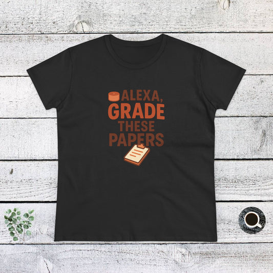 Fun Women's Cotton Tee - Alexa, Grade These Papers. Teachers with Attitude.