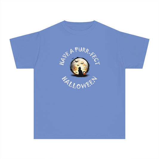 Youth T-Shirt, Girls Tee, Cat Lovers Halloween - Have a PURR_FECT Halloween