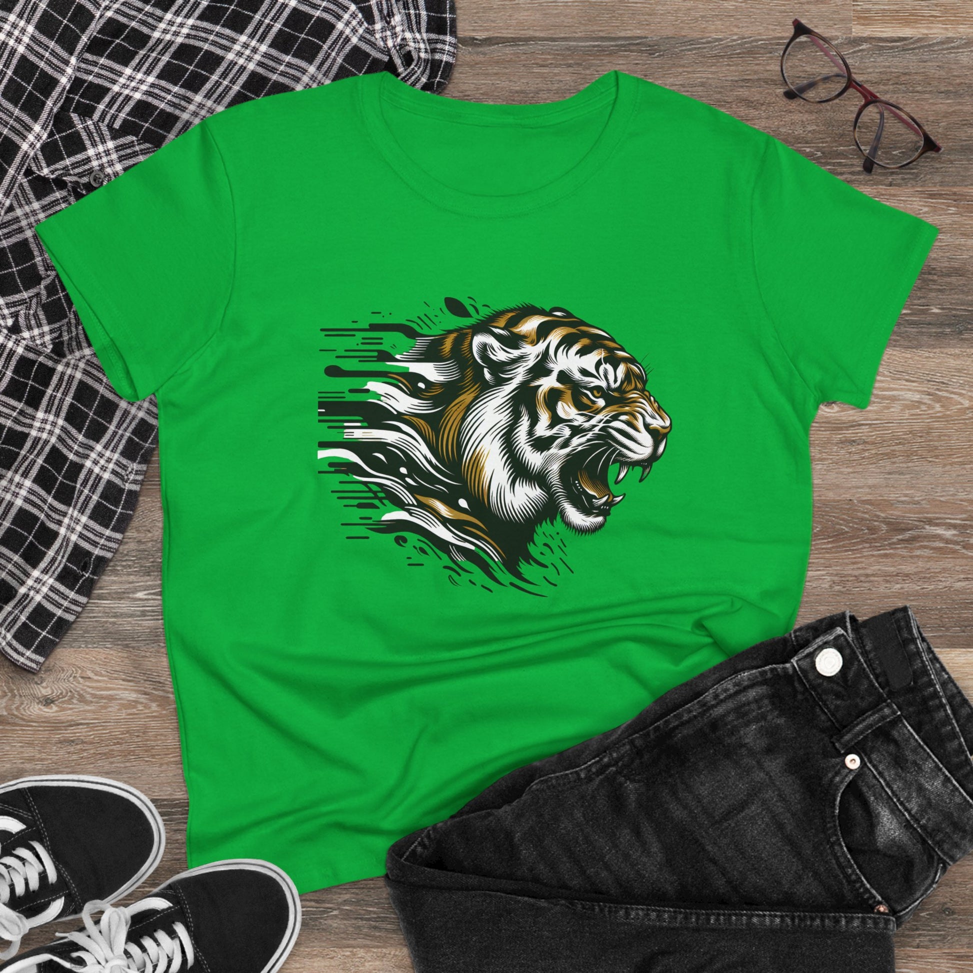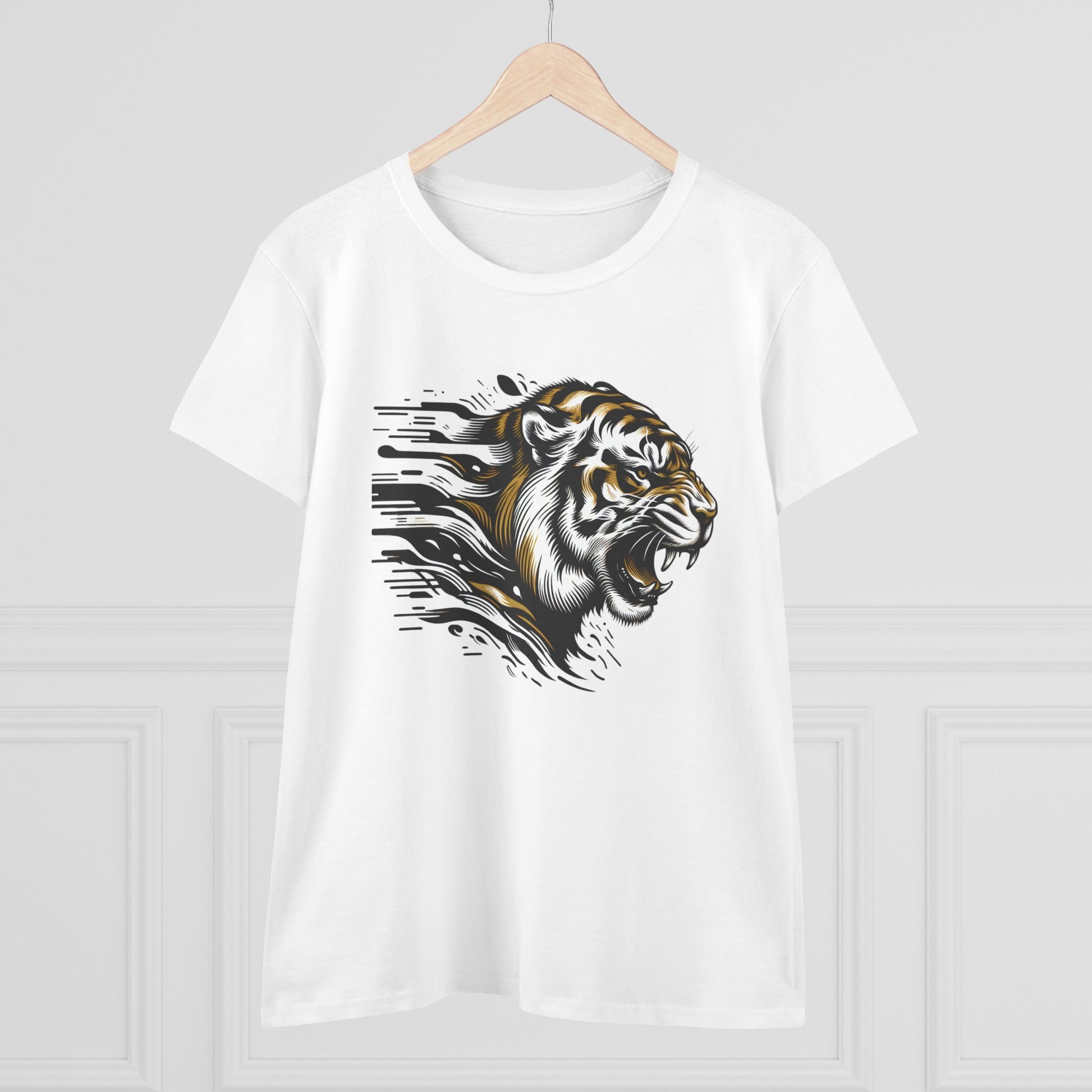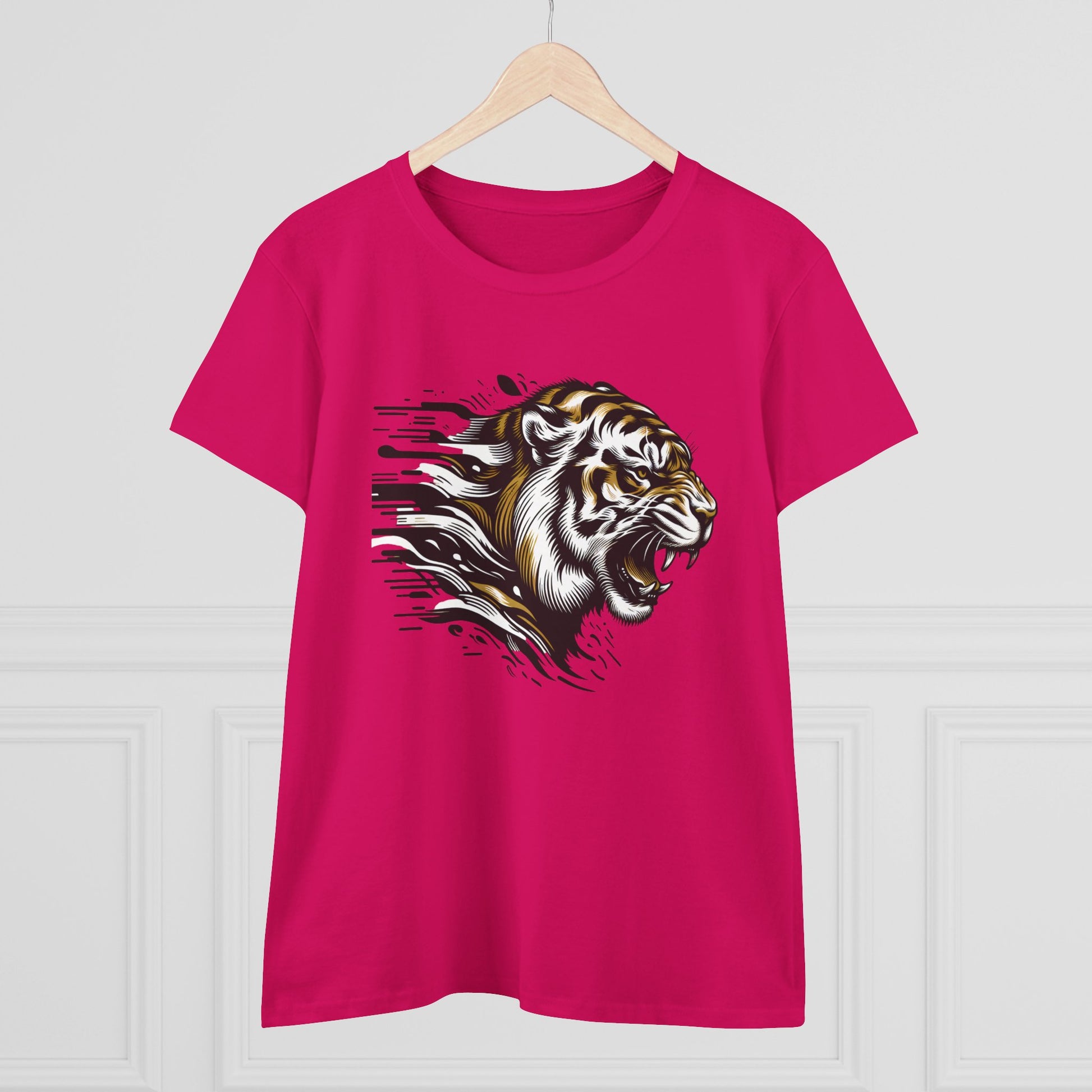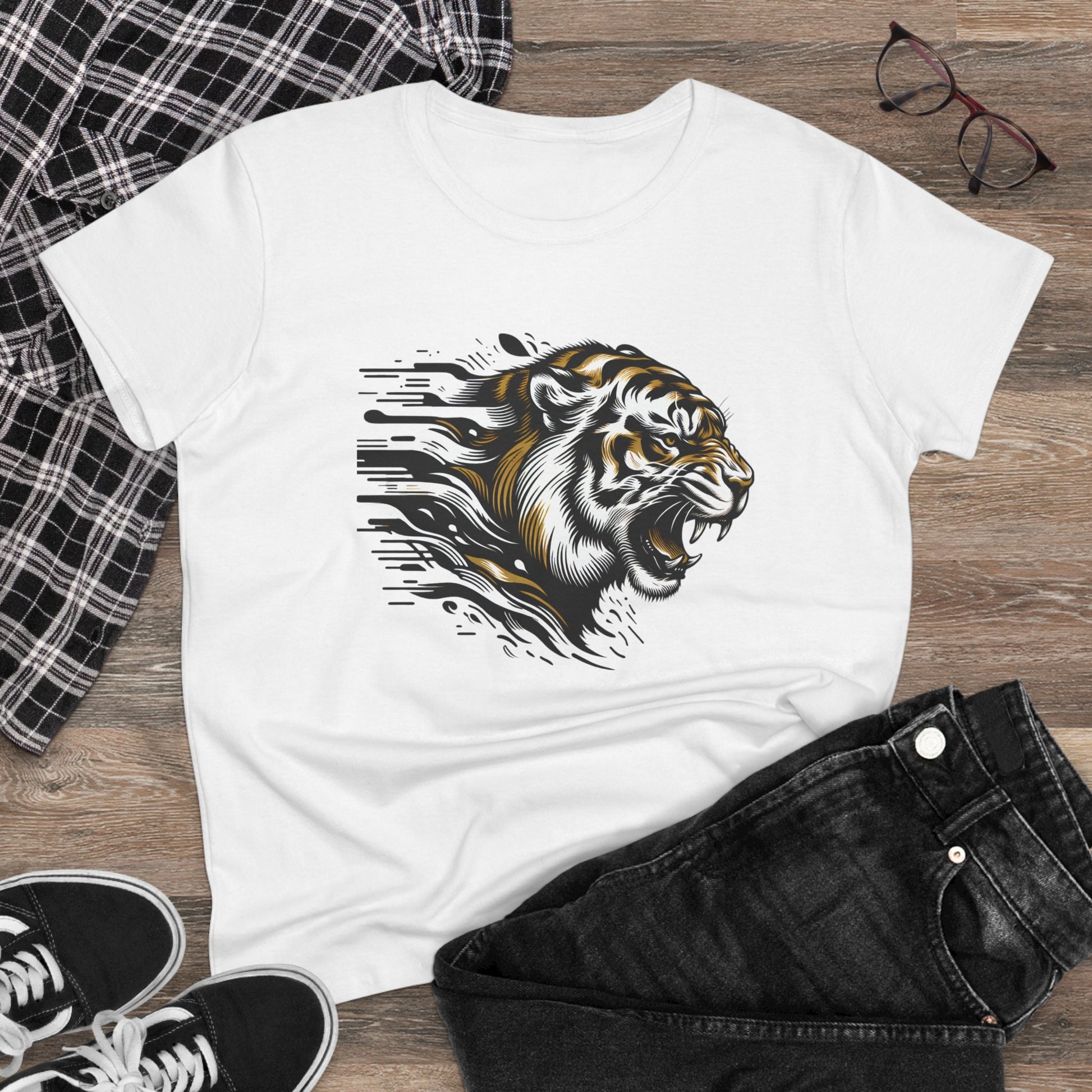 Unleash your bold side with our Fierce Tiger Graphic Cotton Tee! Made from 100% soft cotton, this comfortable and stylish t-shirt features a striking tiger design, perfect for making a statement. Ideal for casual outings or to elevate your everyday look, this tee is a must-have for any fierce fashionista. Available in multiple sizes.