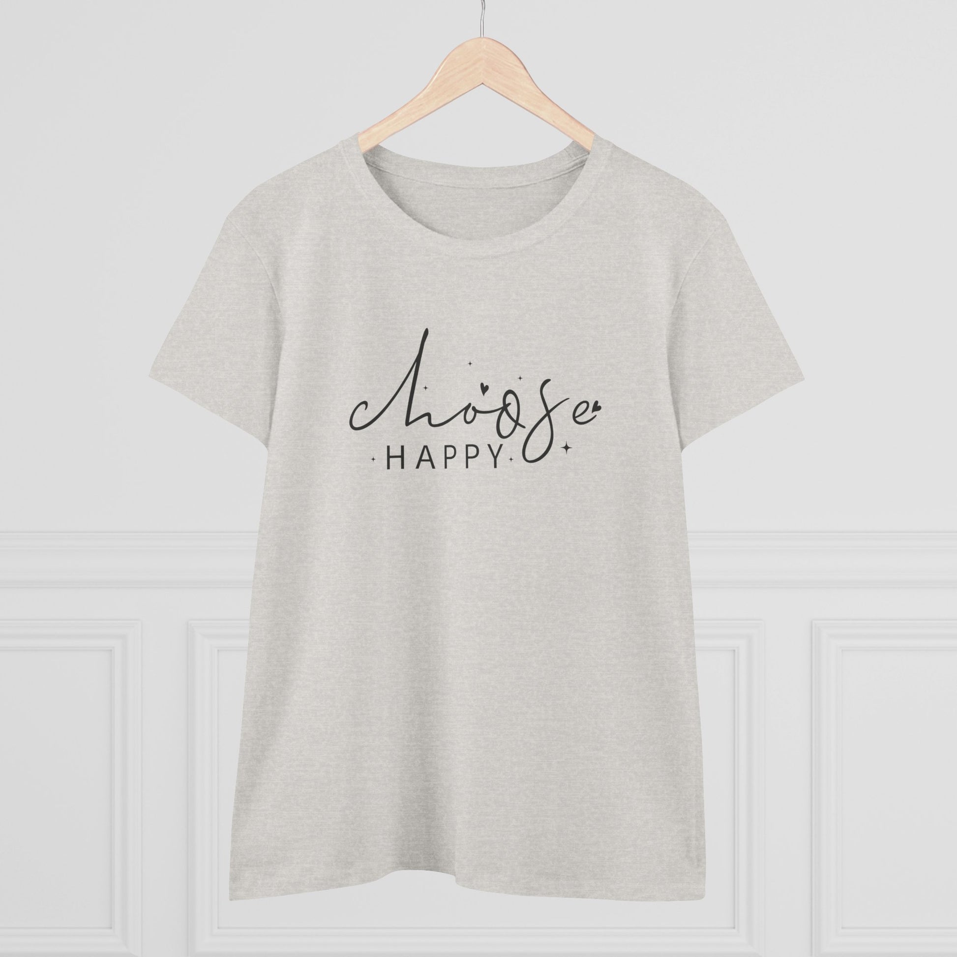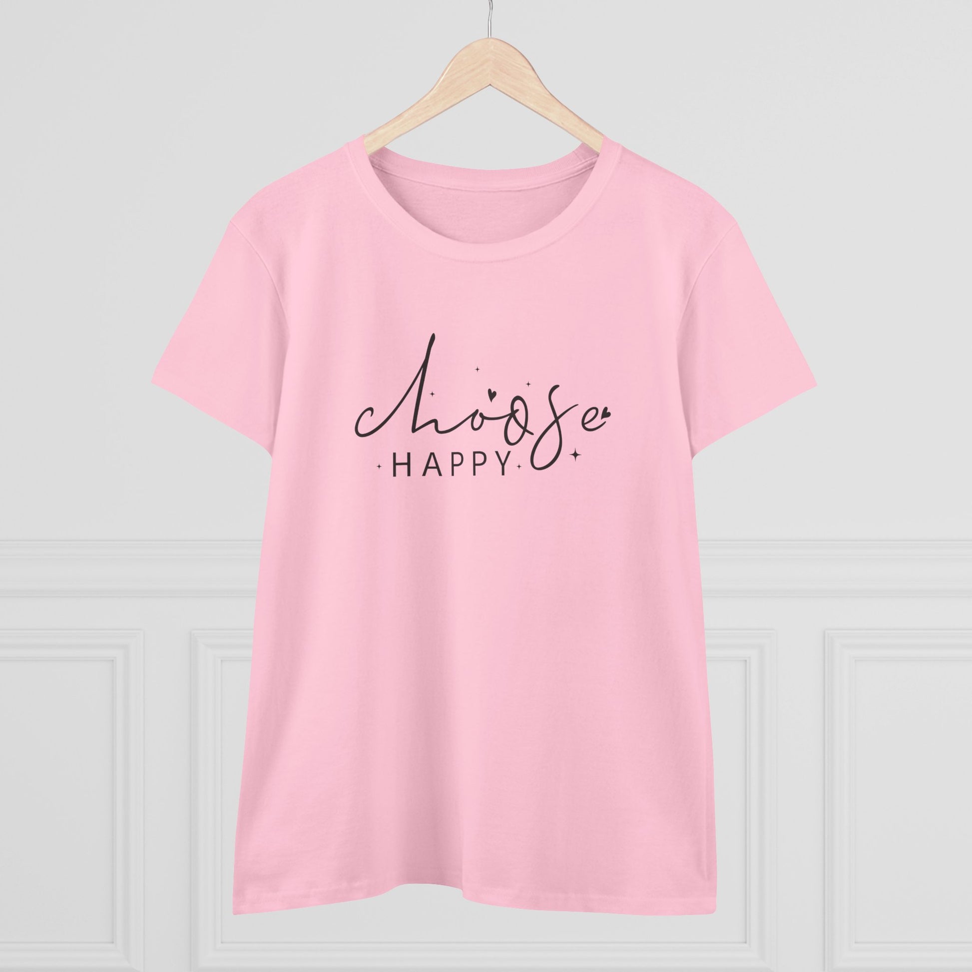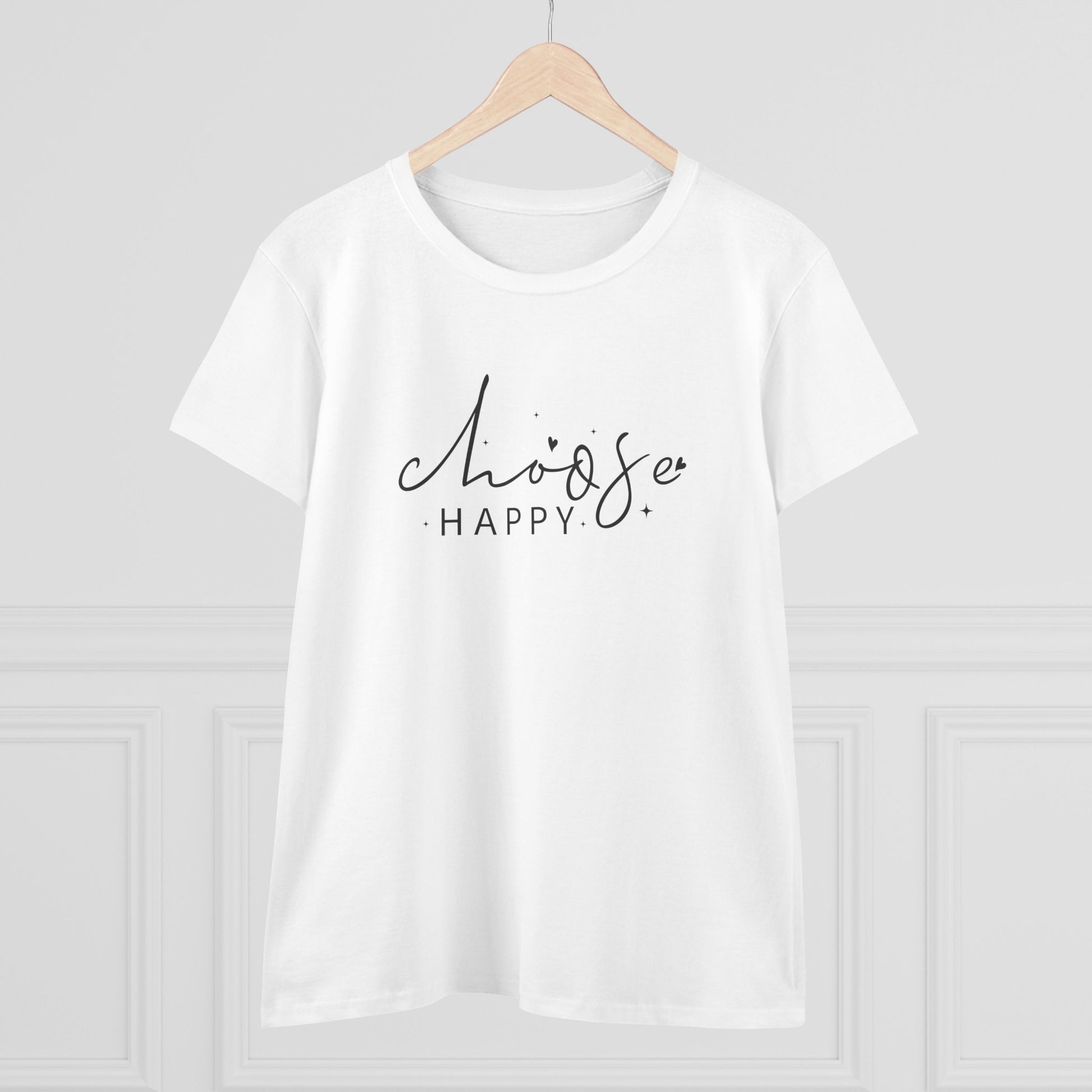 Women's Midweight Cotton Tee - Choose Happy - Positive Mindset Quote